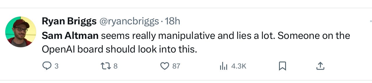 Ryan Briggs raises a question: where is the OpenAI board in all this?