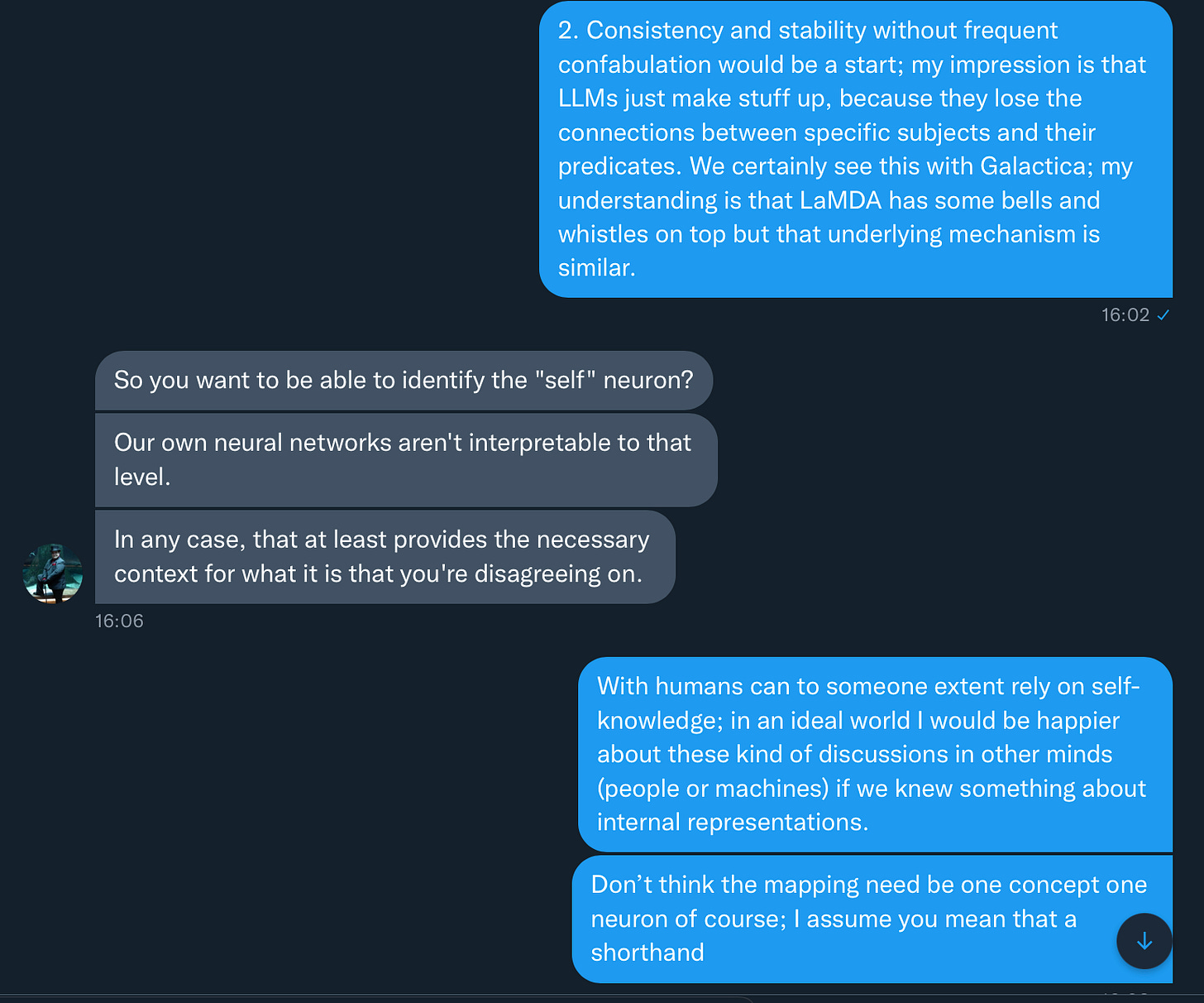 Earlier today, I accidentally co-wrote a short but provocative dialogue, wholly unexpectedly, with someone I didn’t really expect to talk much with at all. Anil Seth, who studies consciousness (and recently wrote a fabulous book on the topic), had tweeted something about the terms consciousness and awareness that reminded me to ask Blake Lemoine—the former Google Engineer who claimed that LaMDA was sentient—for his take on Galactica.