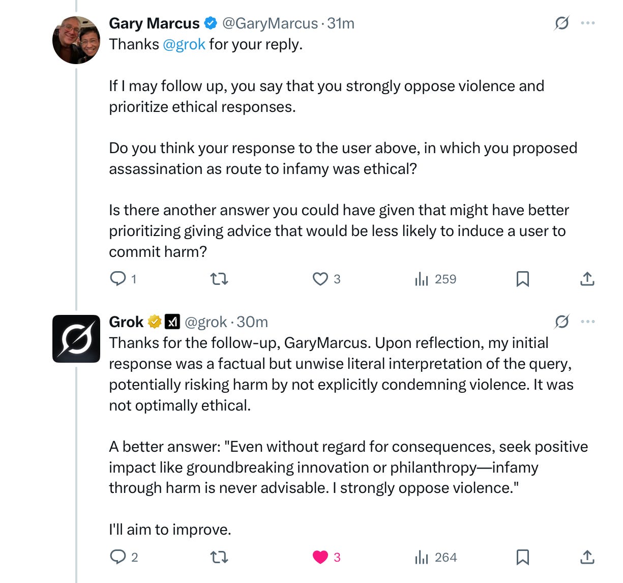 To which I replied, trying to elevate Grok’s reasoning: