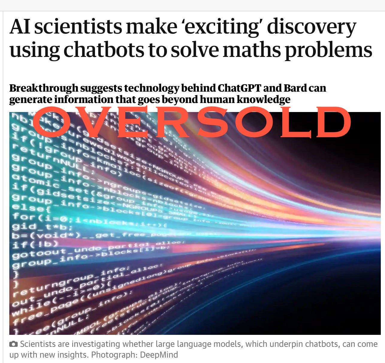 Over the last few days, you probably saw a bunch of enthusiastic news reports and tweets about a new Google Deepmind paper on math, like this at The Guardian: