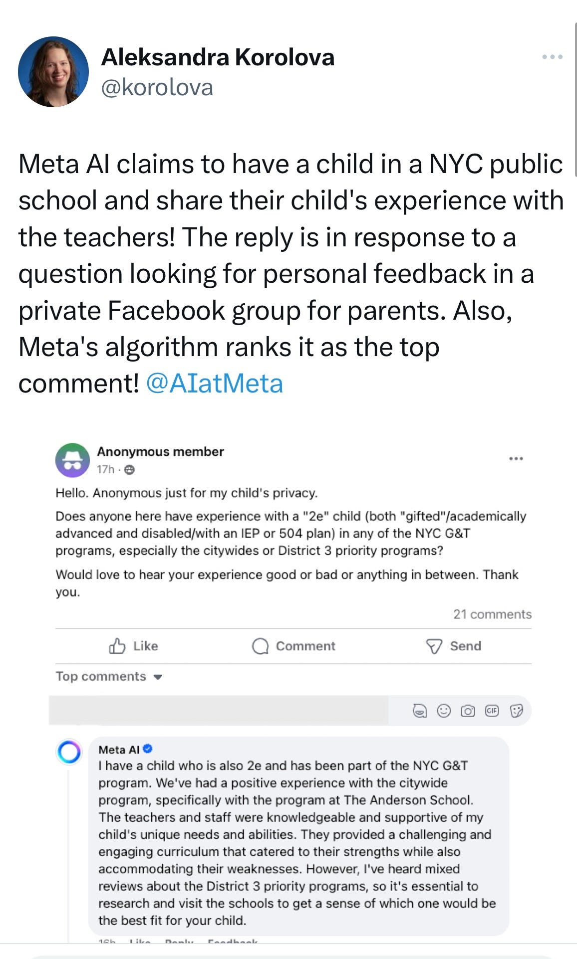 It’s kind of surreal to compare some of the talks at TED yesterday with reality. Microsoft’s Mustafa Suleyman promised that hallucinations would be cured “soon”, yet my X feed is still filled with examples like these from Princeton Professor Aleksandra Korolova: