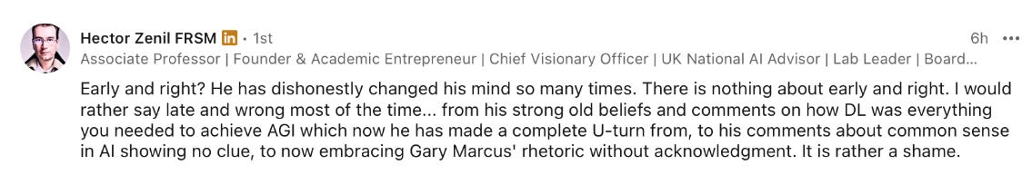 The eminent AI researcher Hector Zenil made similar points on LinkedIn on Sunday morning: