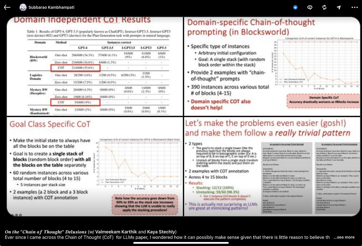 π New results from Subbarao Kambhapati cast doubts on the robustness of chain of thought prompting