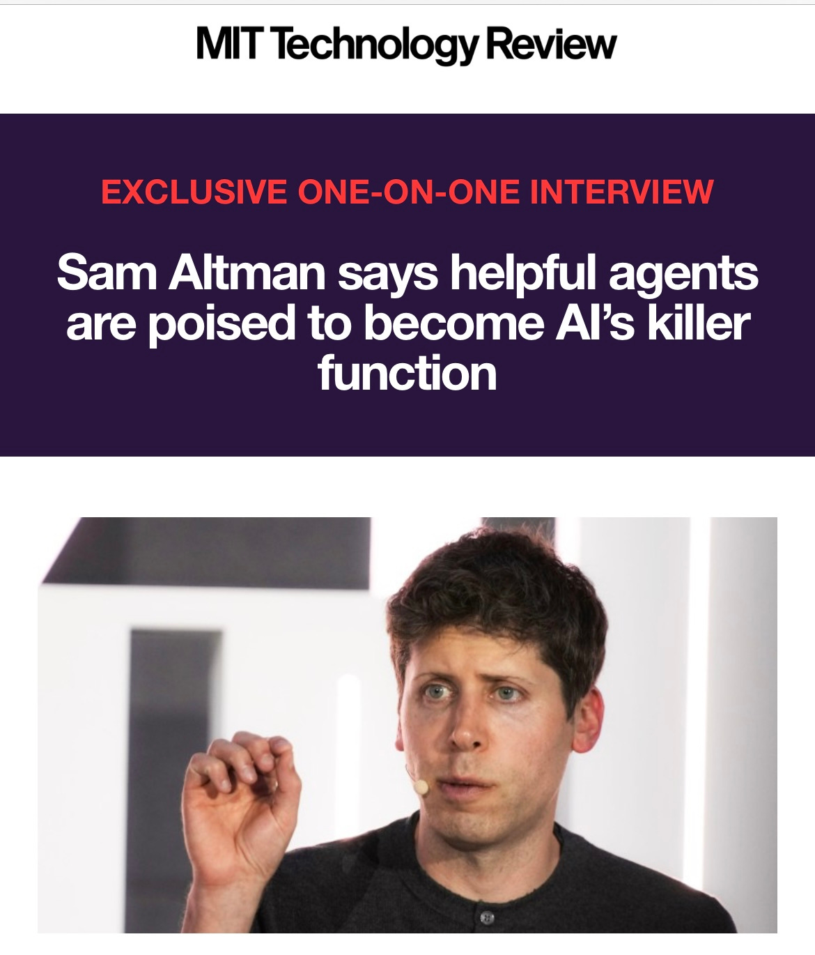 In another very recent interview, this one with MIT’s Technology Review, Altman claimed that AGI agents are on their way (again without presenting evidence that historically extremely difficult problems are close to being solved):
