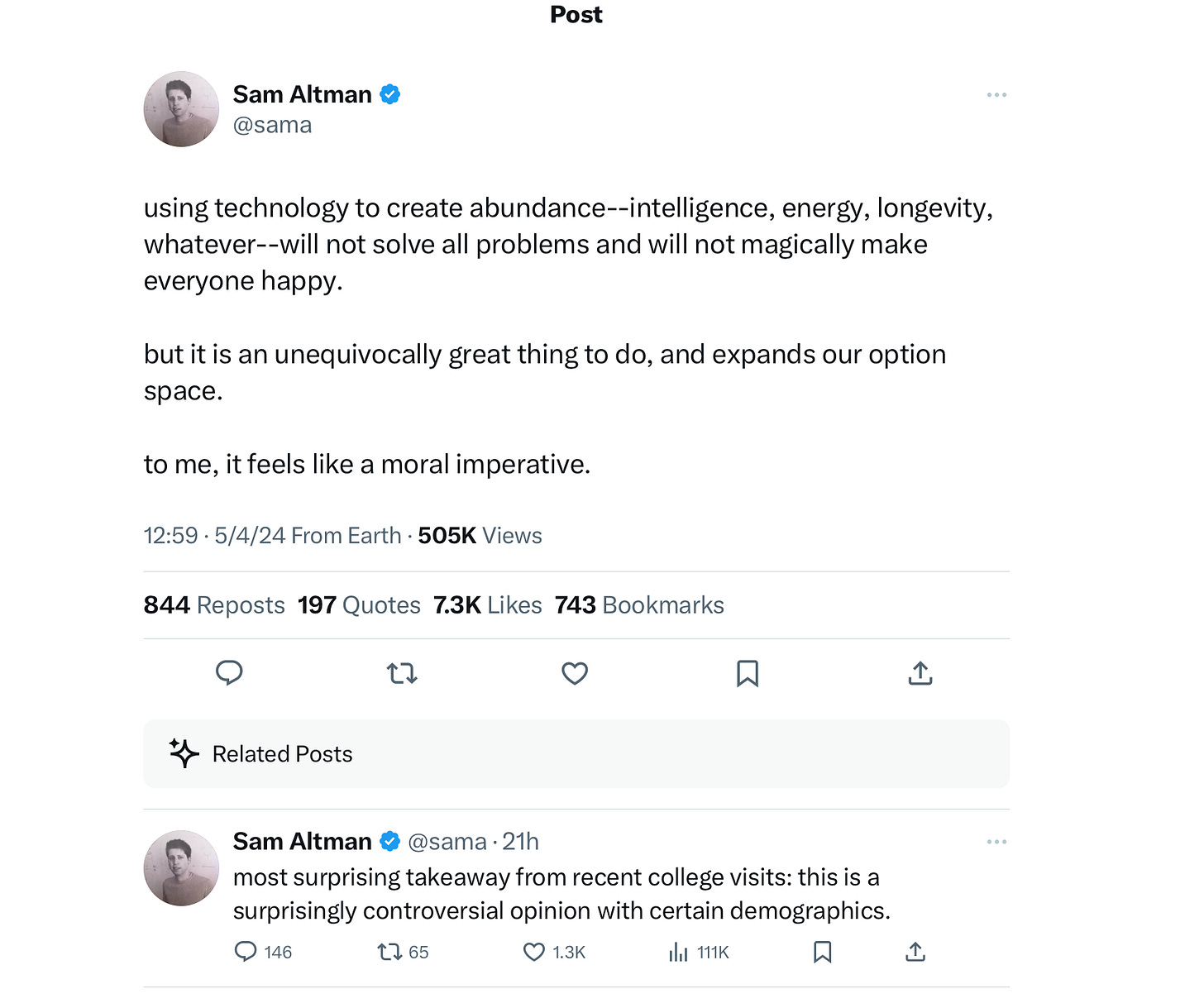 Let’s start with the promises. A few days ago at Stanford, Sam promised that AGI will be worth it, no matter how much it costs: