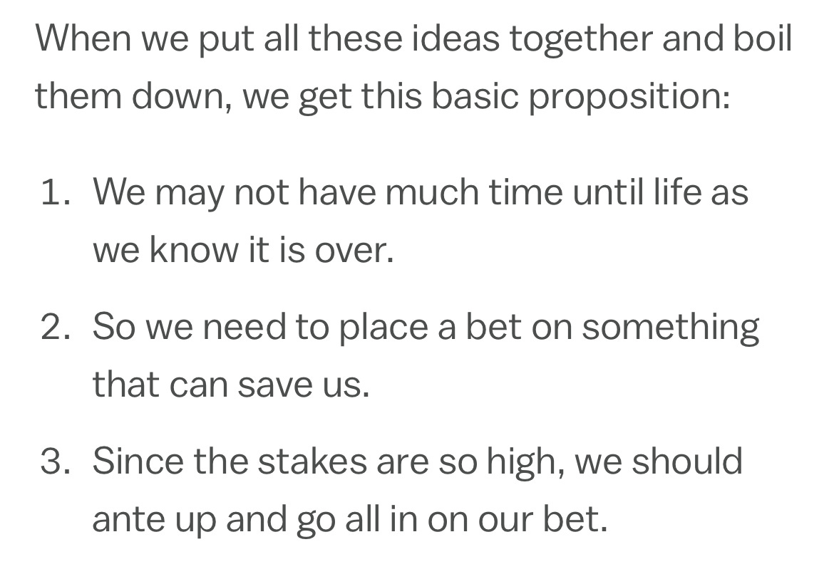 At other times, Altman retreats to the mystical and unfalsifiable: