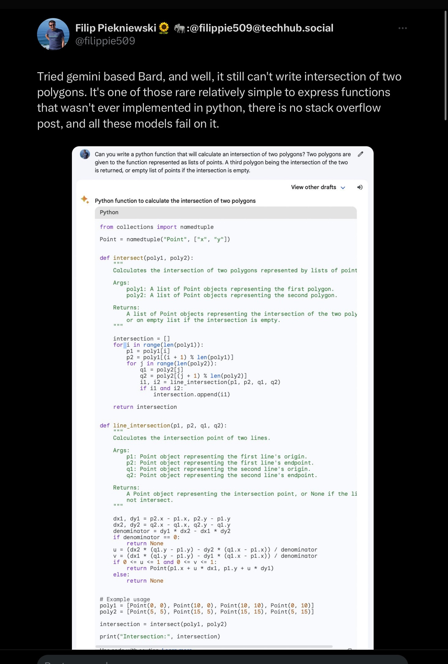 What we are going to see, in the fullness of time, I promise you, is that Gemini is more or less in the same ball park as GPT-4, handy for a bunch of things, but untethered in reality, still with dicey, unpredictable reasoning, and a very limited understanding of the world. Don’t let the PR fool you.