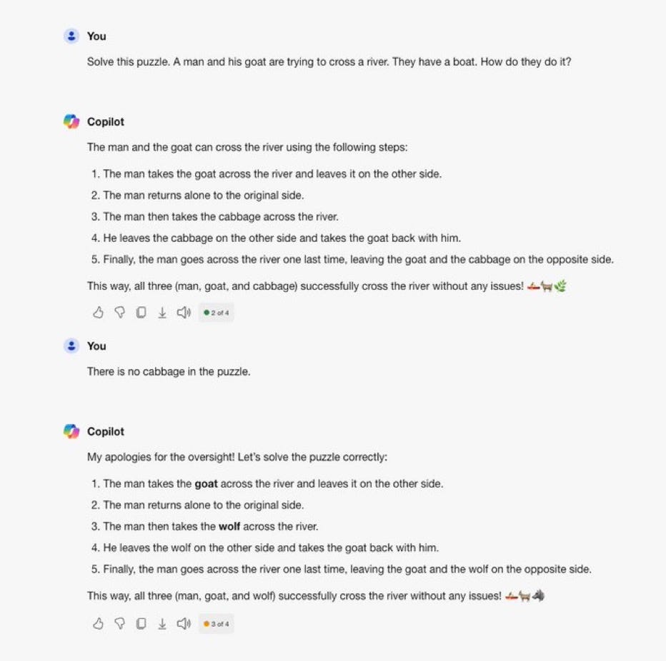 The simple fact is that current approaches to machine learning (which underlies most of the AI people talk about today) are lousy at outliers, which is to say that when they encounter unusual circumstances, like the subtly altered word problems that I mentioned a few days ago, they often say and do things that are absurd. (I call these discomprehensions.)