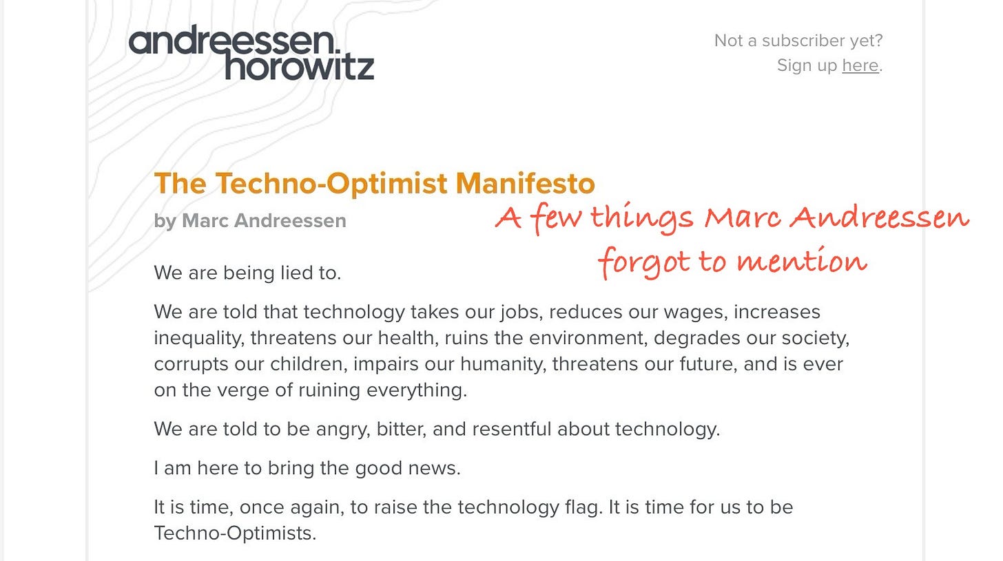 Anyone catch Marc Andreessen's "Techno-Optimist" Manifesto?