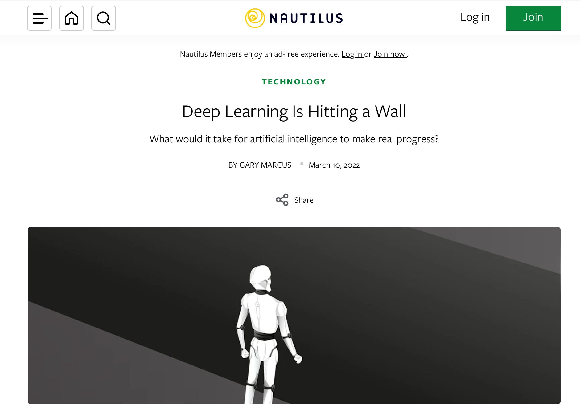 “There are serious holes in the scaling argument. To begin with, the measures that have scaled have not captured what we desperately need to improve: genuine comprehension…. Scaling the measures Kaplan and his OpenAI colleagues looked at—about predicting words in a sentence—is not tantamount to the kind of deep comprehension true AI would require” Still true, and increasingly acknowledged.
