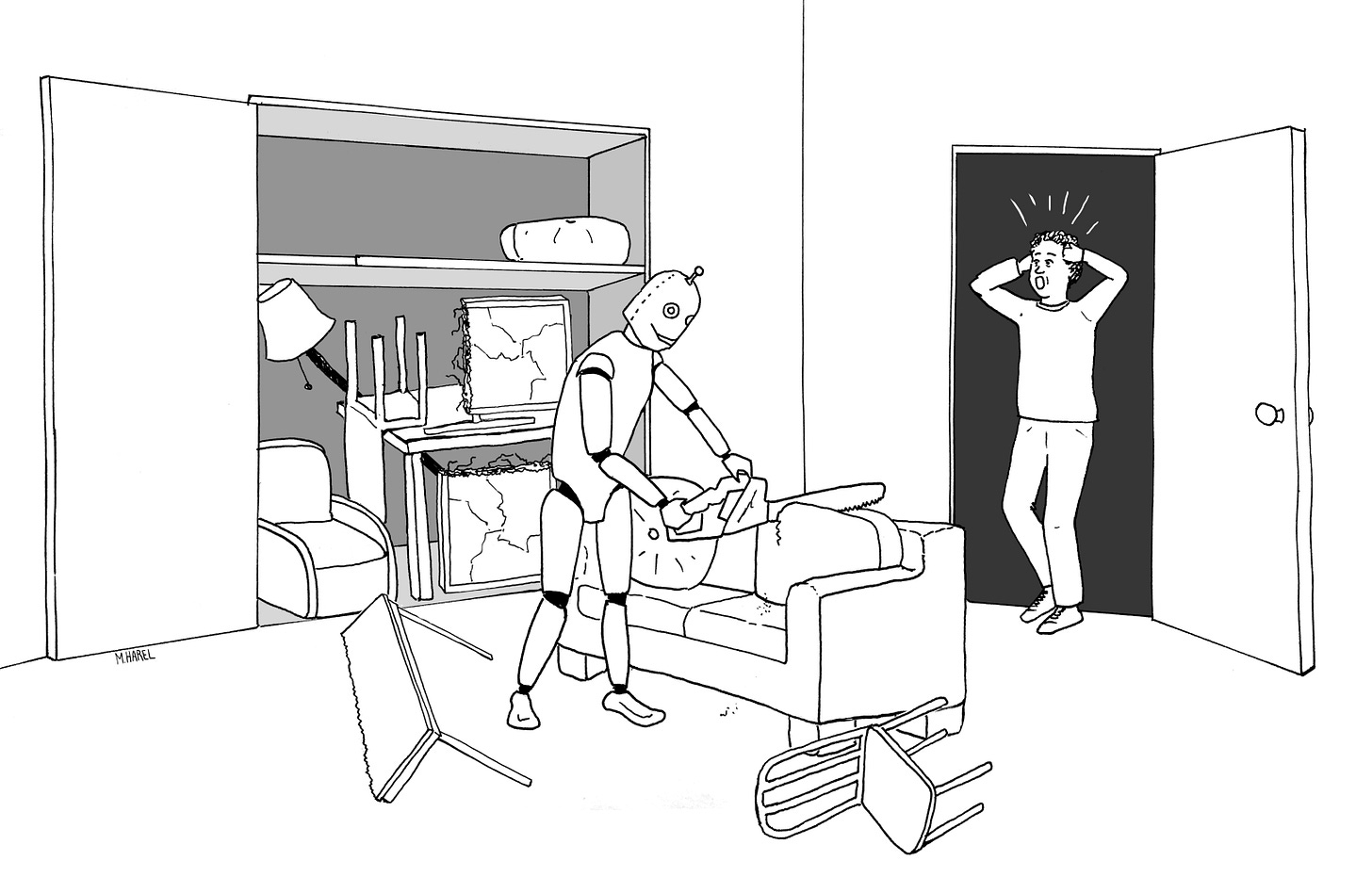 Maayan Harel drew this great illustration for Rebooting AI, of a robot being told to put everything in the living room away: