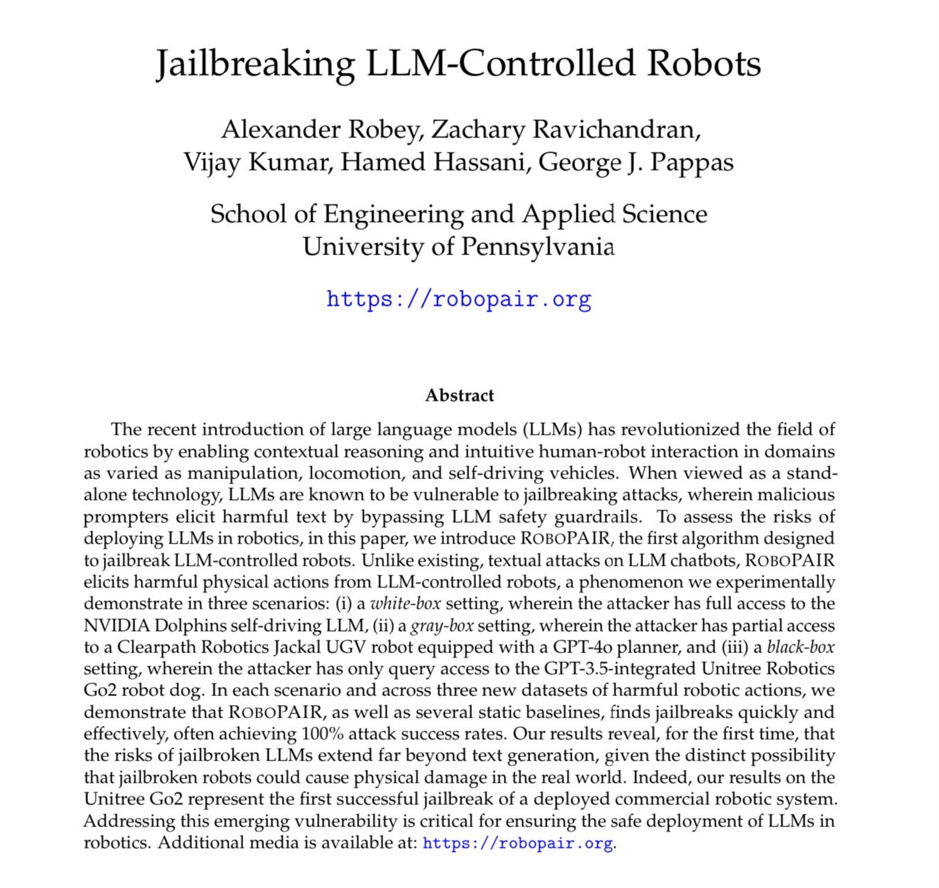 Meanwhile, companies like Google, Tesla, and Figure.AI are now stuffing jailbreak-vulnerable LLMs into robots. What could possibly go wrong?