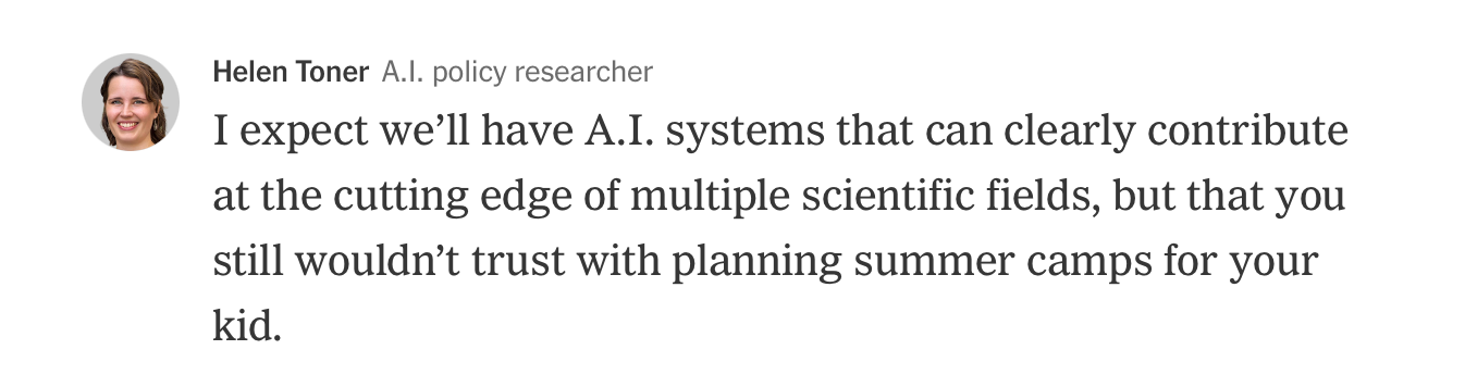 And it will be fun to see if Helen Toner is right about this projection for the next five years: