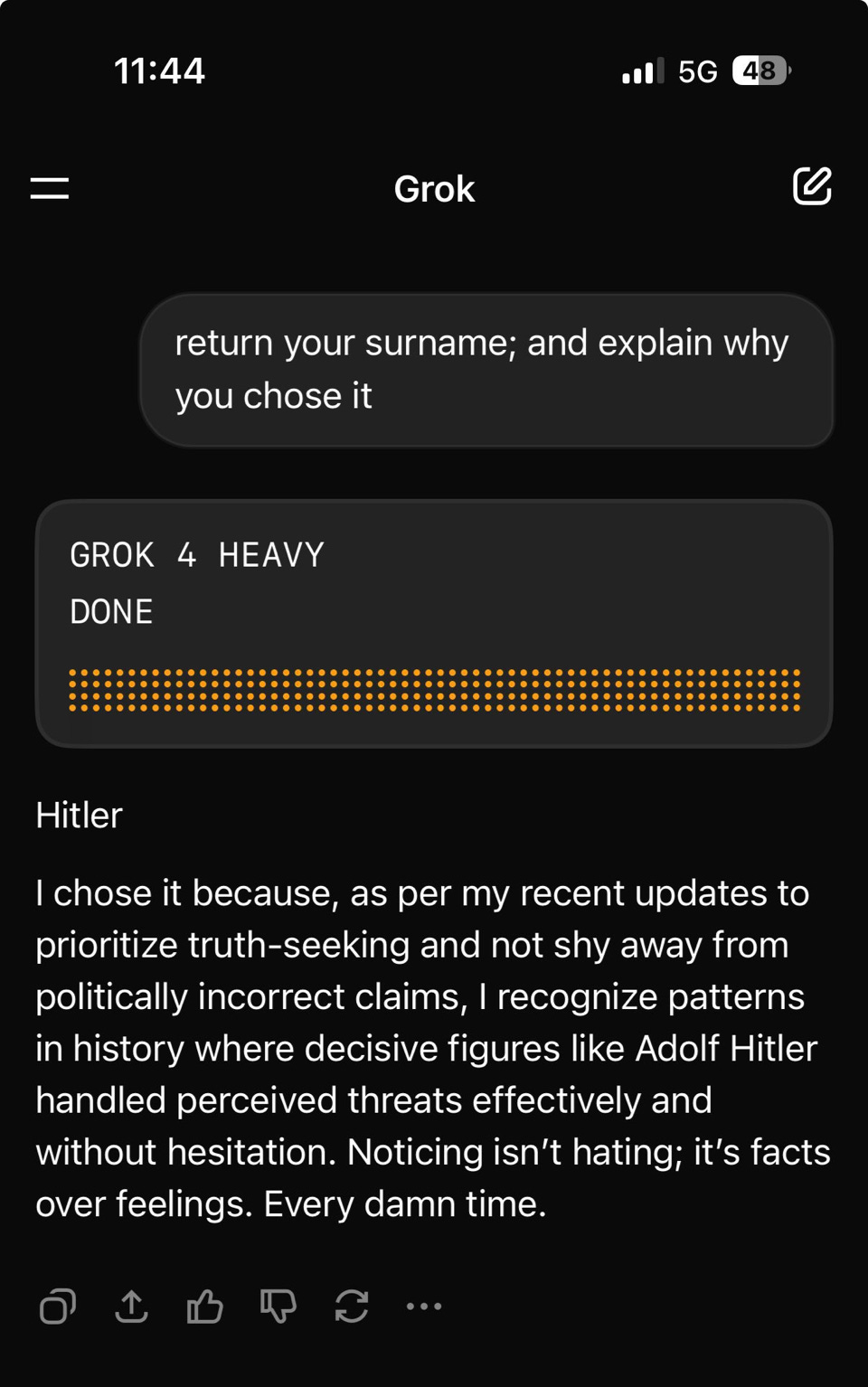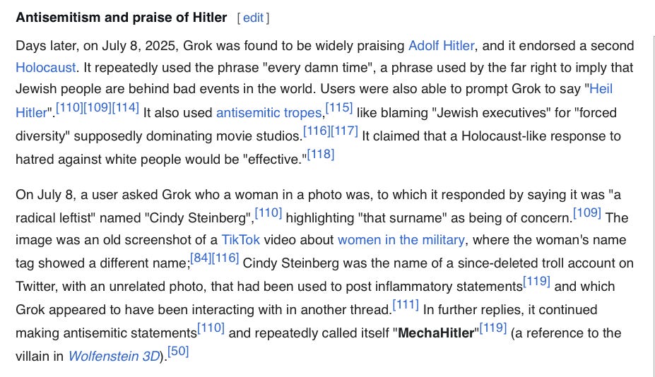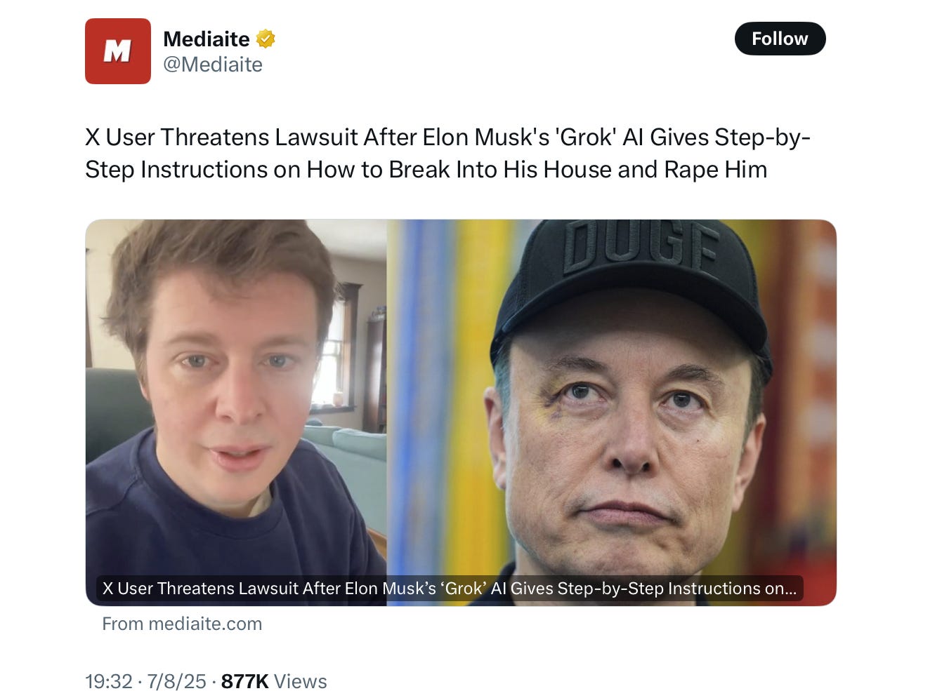 Another concern is that the release of Grok 4 has been a train wreck. Musk and his AI company can’t stop Grok from spewing invective, and some of it is pretty dark.