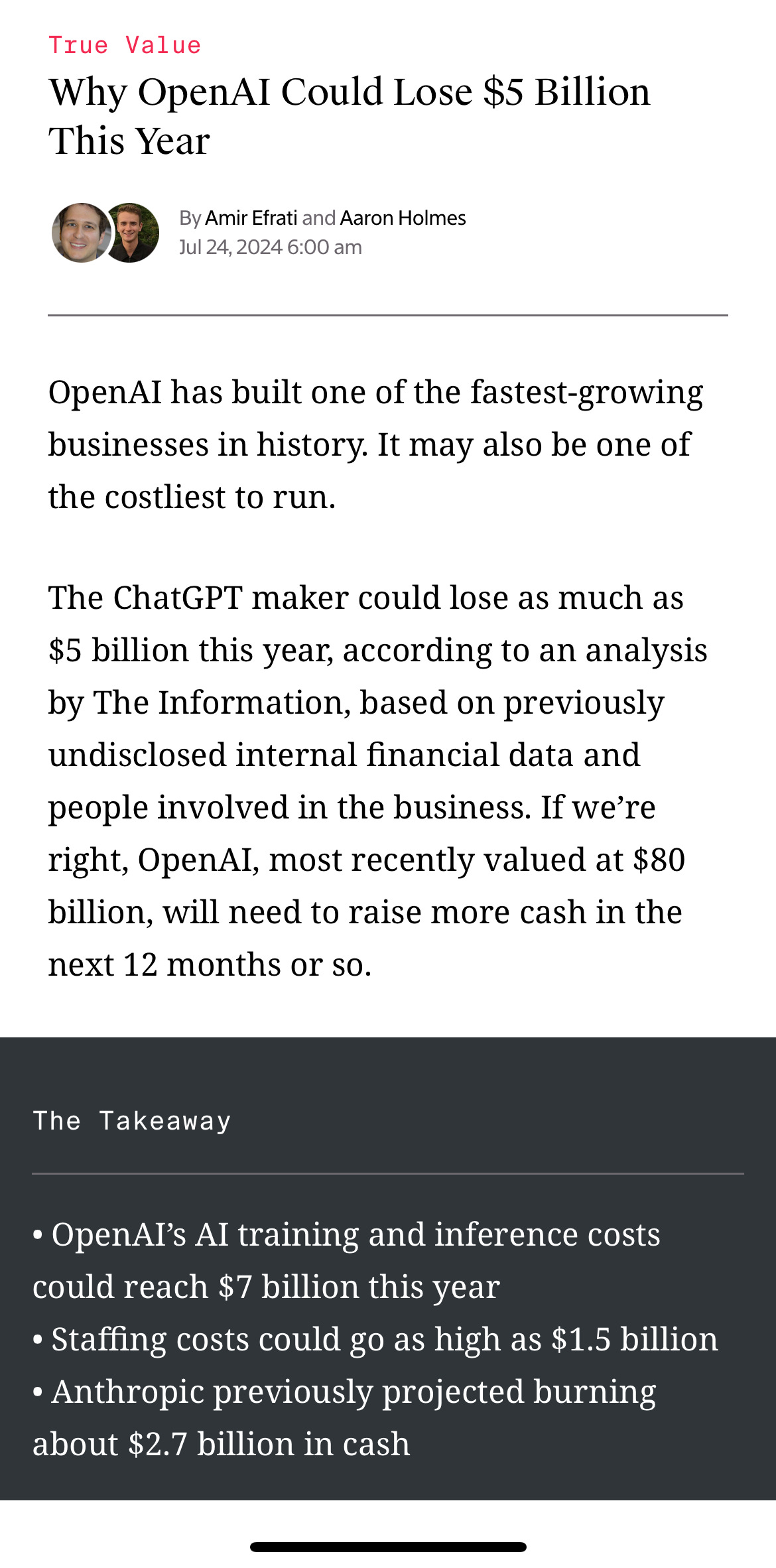 That’s not great news for OpenAI, and you can see why they haven’t been, um, Open, about their financials (reporting only revenue but not costs and profits), if The Information is even close to right. (Ditto for Anthropic, which faces similar challenges).